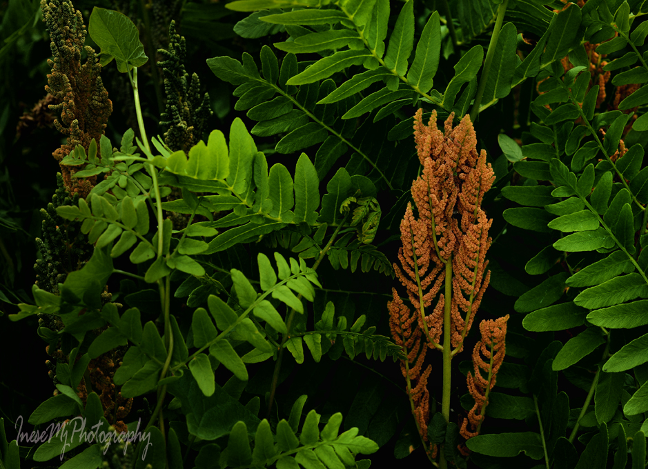 In fact, ferns are not flowering plants. However the clusters of sporangia of Royal Fern do resemble flowers. Especially in the dark 🙂