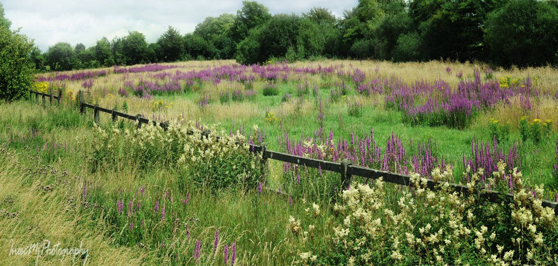In this meadow, there are three weeds in bloom: Meadowsweet, Purple Loosestrife and unwelcome Ragwort.