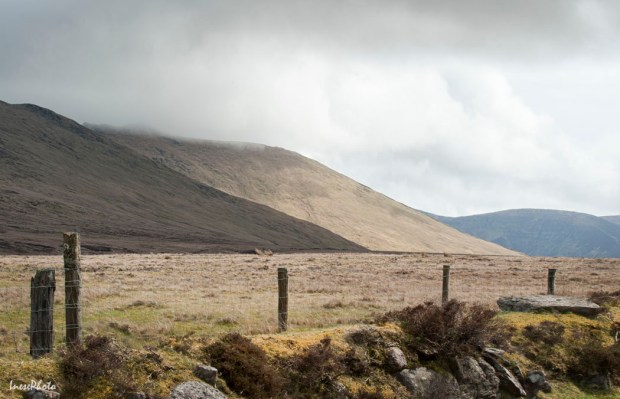 In my first Comeragh blog post you saw the other side of these distant Laghtnafrankee mountains – Glenary Valley. To get a closer look at the mountains, we will turn to the other road. There are two roads, both of them finally coming together and taking you across the Comeragh Plateau from Clonmel to Ballymacarbry. Right now we are walking along the Harney’s Cross Road, the upper one.