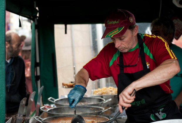 Harvest festival is a lot about eating and being merry. Parnell street is turned into an outdoor restaurant, live music is playing, some people are cooking and all the other people are eating.