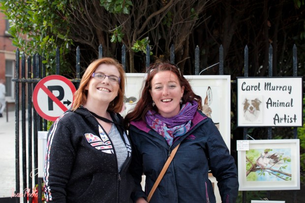 I spot a pair of donkey ears in the painting. Carol Murray’s works are here as a part of the outdoor exhibition Art on the Railings where young and established artists of different mediums can hang their artwork in the Viking Triangle.