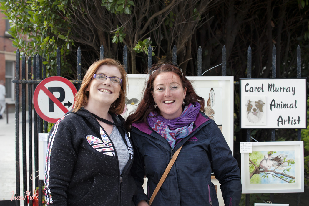 I spot a pair of donkey ears in the painting. Carol Murray’s works are here as a part of the outdoor exhibition Art on the Railings where young and established artists of different mediums can hang their artwork in the Viking Triangle.