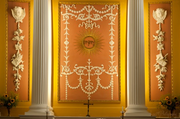 The architect of the Cathedral John Roberts built both Catholic and Protestant cathedrals in Waterford city. I mentioned him in my blogs before, since he designed many historical buildings in our county. I want to point out an important detail of the interior. A symbolic image of the sun contains the Tetragrammaton, the Hebrew letters YHWH that stand for Jehovah, reminding of Christianity’s roots.