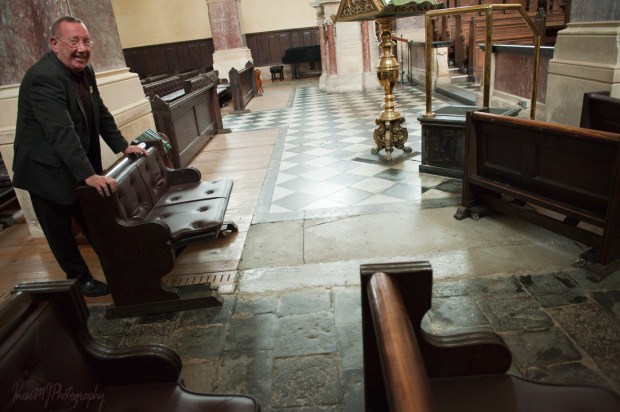 In this spot exactly, on the right from the altar. To make sure that I get it right, the tour guide moved away the seats for me to take pictures.