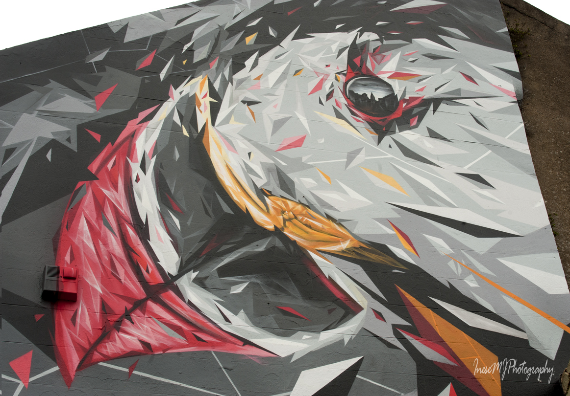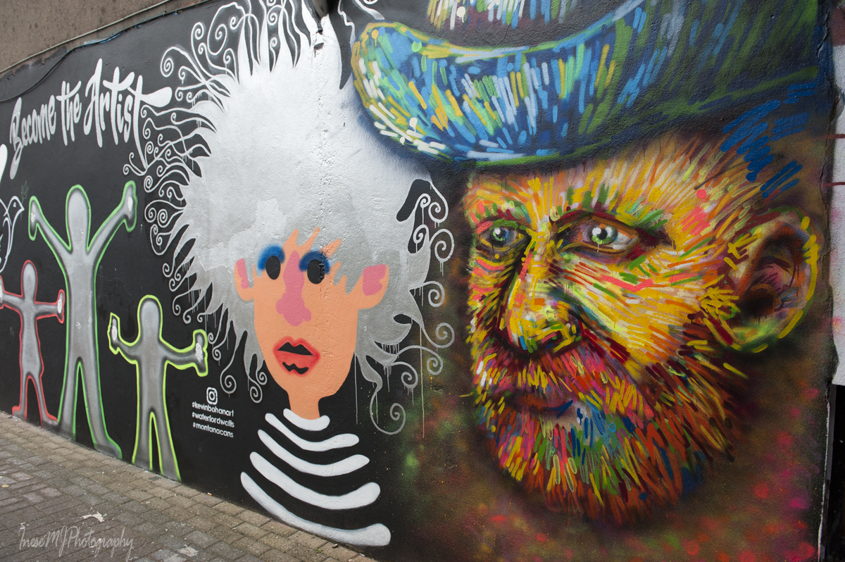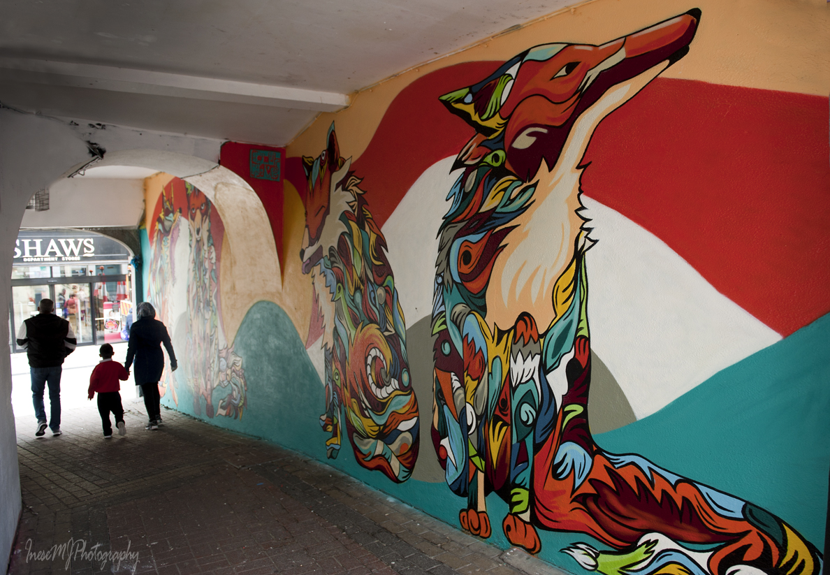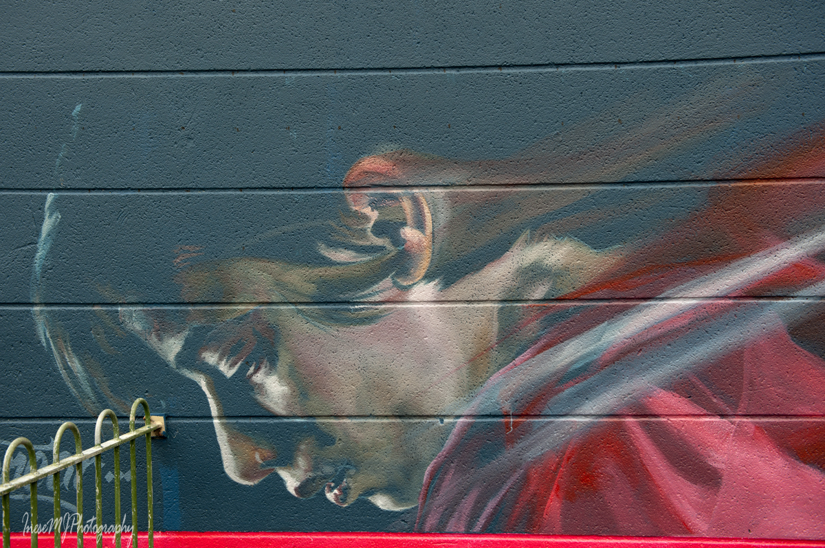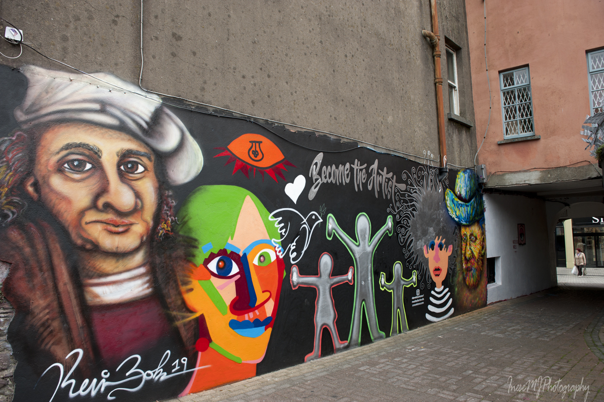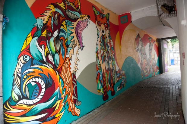 I hurried down the stairs only to face a black Pac Man ghost and many other strange faces staring at me from the walls.