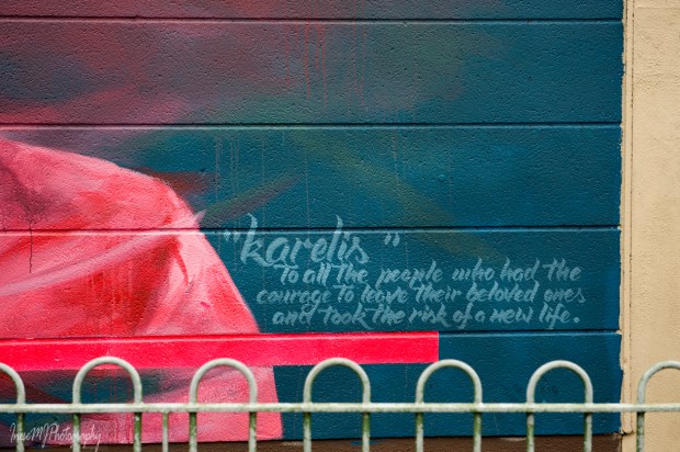 Because of that, I am afraid to walk across the open space, and prefer to stay near the wall. I can see some photographs on the green board on the other side, but no way I would walk across.