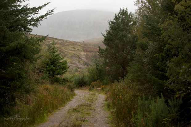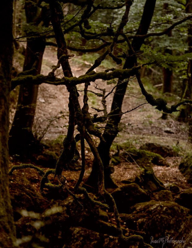 After carelessly taking the picture, I walked out of the wood with intention to follow the loop trail and return to the same spot. The view was familiar – I have never been in the Crough Wood before but walking along the Mahon River I knew that I saw the towering rocky walls of Coummahon filling the skyline. I reckoned it would take me less than an hour to return. As it was getting darker, I had to adjust my camera settings. No one was around as far as I could see, but it was hard to tell was it a good or a bad thing. I couldn’t help feeling a little wary, for no reason. Probably it was the mist that began to form in the valley…