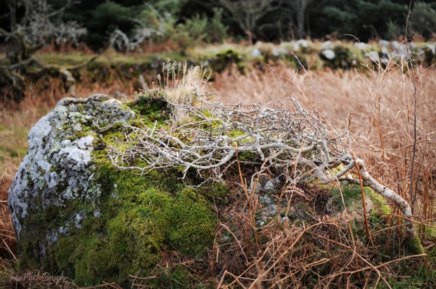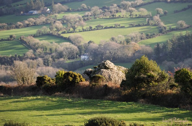 I had never been to the hermit’s cave, but I had a map from Barry Dalby of EastWest Mapping and spotted the rock from the main road. It took a while though, but on a fine and chilly December day I was finally standing there, as close as I could get to the place. The rock looked massive, its surface was glowing in the low winter light.