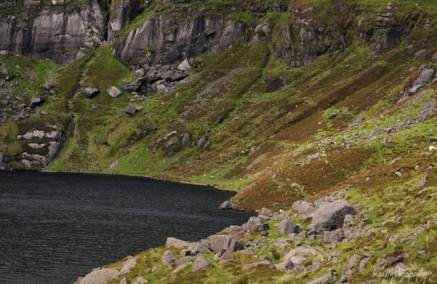 After days of search, he came across a cavern in the cliff behind Coumshingaun lake. It seems the cavern was the one where William Crotty used to hide his horses and stolen cattle.