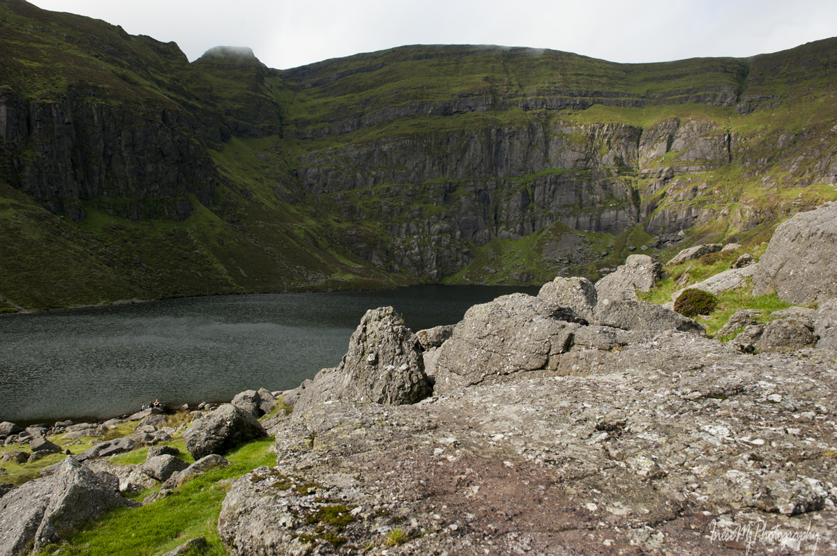 We hike a little higher to get a better view of the lake. As I already told you, we, the unfit, can have as much fun as anyone else here at the Coumshingaun lake.