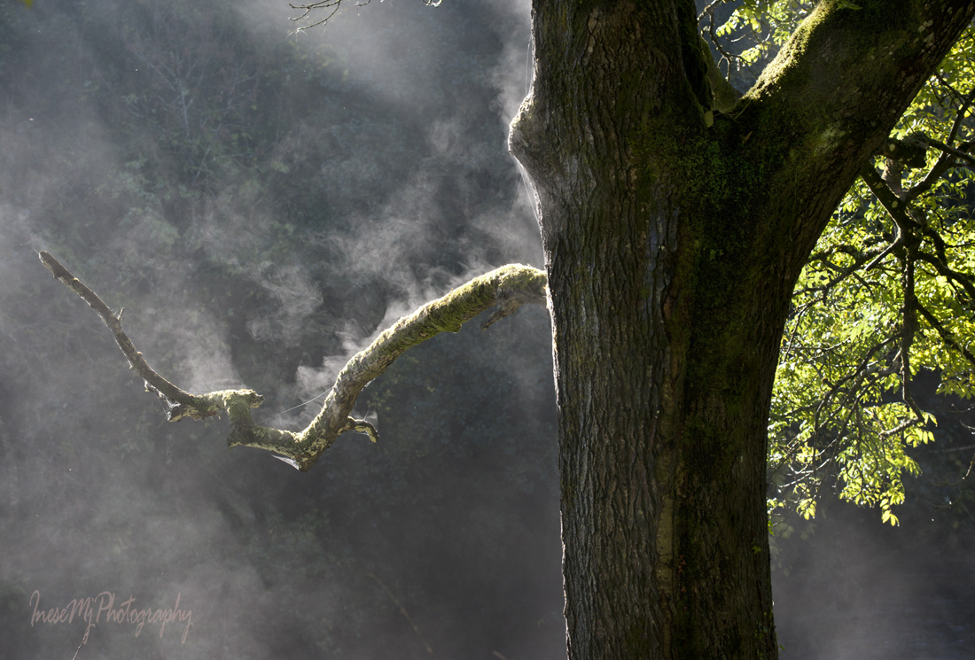 Since the ancient Rhododendron tree fell down during the hurricane Ophelia in autumn 2016, the only way to get to the Mayfield house is to crawl through under the tree trunk…