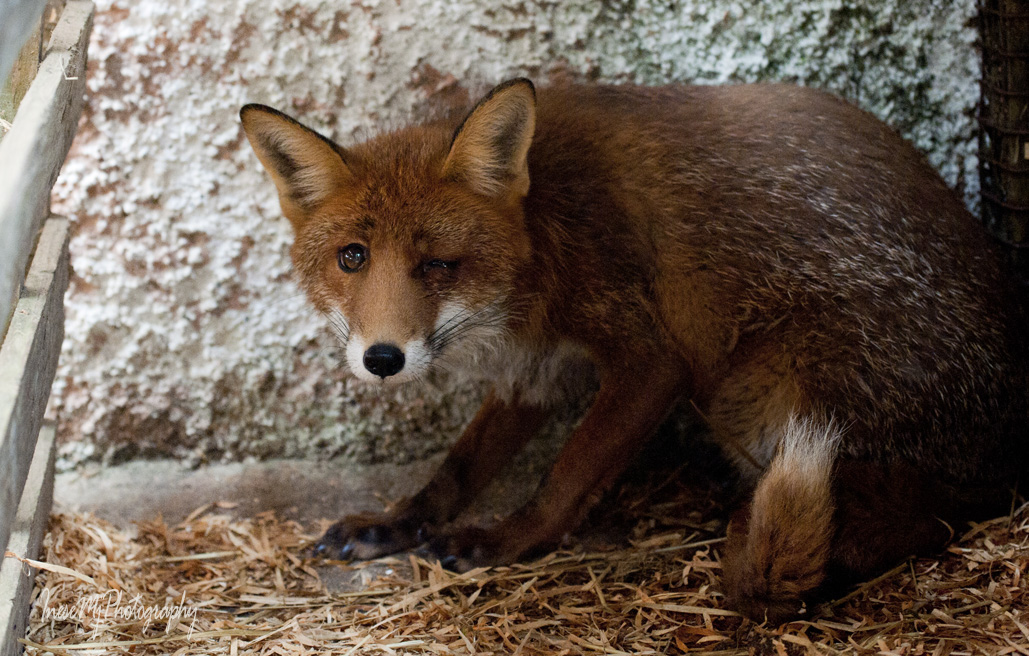 This is Henry, he is named after Kilkenny hurler Henry Shefflin. A man  brought him to Pat a year ago after his dogs attacked and mauled him. Pat thought he would have to put him down, so bad he was. His ligaments were cut, his head was severe injured, especially his bottom jaw and left eye. Pat nursed him back to health, but it took a while. Henry is a gentle and affectionate creature. Pat calls his female foxes “girls”, but Henry he calls “son”.