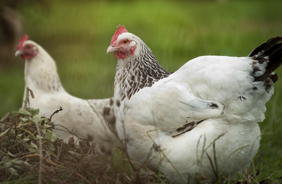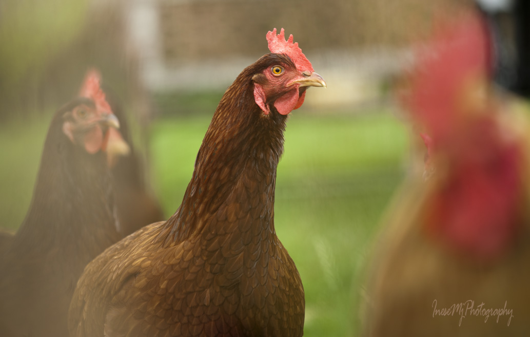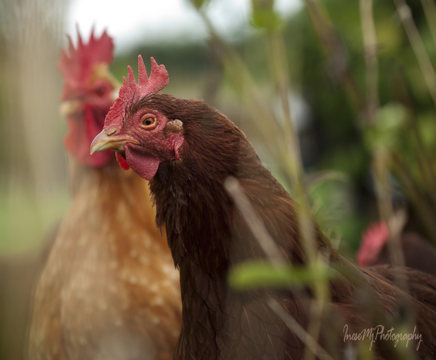 After leaving the fox pen we talk for another few minutes, and hiding behind the grass, I take some pictures of Pat’s gorgeous chickens.
