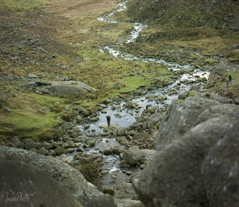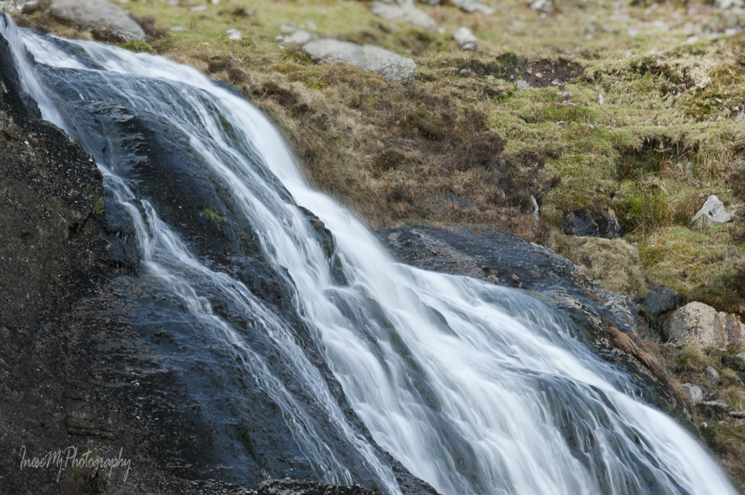 Coum Mahon in all its glory. The path to the waterfall is about one mile long, and there is no climbing necessary. The path is wheelchair accessible almost all the way down to the Falls. Coum Mahon is V-shaped, unlike the other coums (hollows) in the Comeraghs that are U-shaped. By the way, the word Comeragh, or Cumarach in Irish, means ‘full of hollows’. Many of the hollows nestle lakes.
