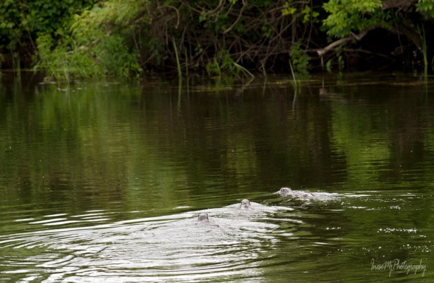 River otter is a common resident. A family of otters live at Carrick-on-Suir marina which is quite a busy place. River otters usually enter water only to hunt or travel. These three otters looked like they were traveling with a purpose.