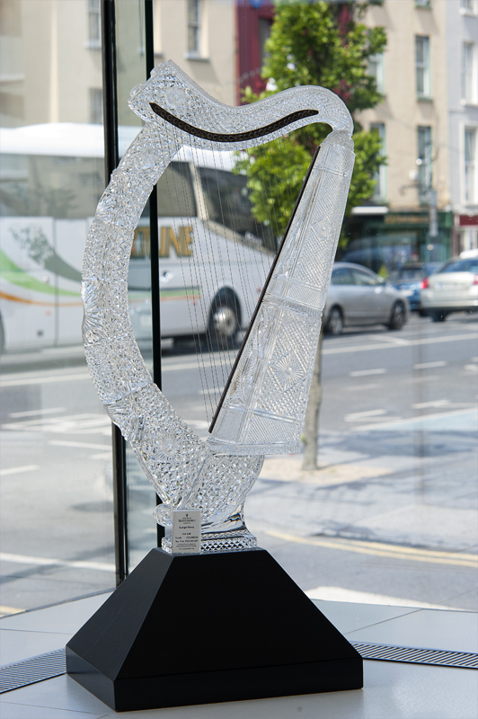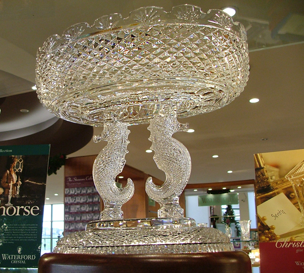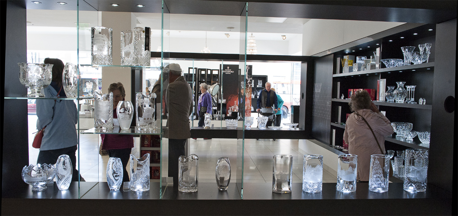 With the Waterford Crystal House in background, The Tamarros marching band from Italy look very appropriate flashing their disco ball baton.