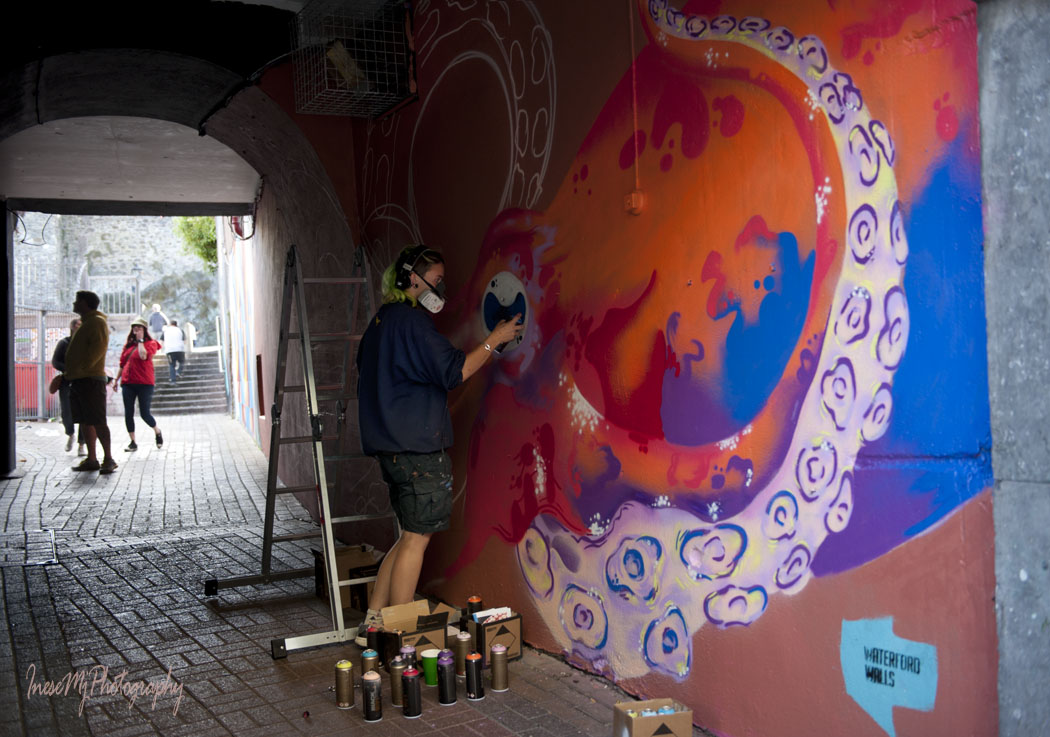 Once again the streets of Waterford became an art gallery as the Waterford Walls festival brought in another 48 works that transformed the look of the city. I had a few days to catch a glimpse of some artists, and enjoyed the completed work when I returned from my trip.