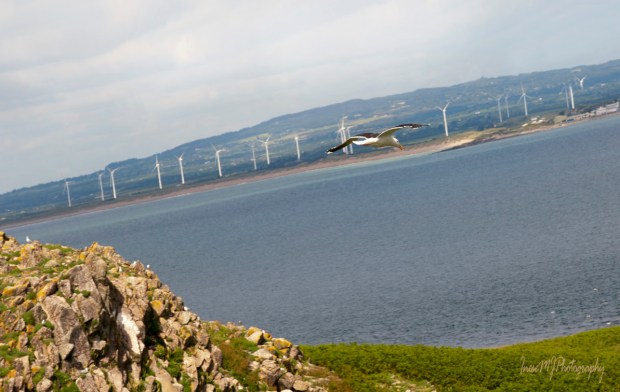 This picture was taken from the Great Saltee. The seagull’s bill points straight to the Forlorn Point, and the beach and dunes are on the left hand side.