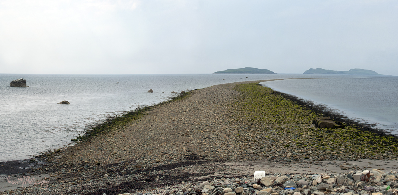 At low tide we walk east from the marina along the shingle beach to St. Patrick’s Bridge, a natural bouldery gravel causeway, glacial deposit where the real St. Patrick has probably never set foot – though legends say different. He was chasing the Devil who took a bite of a mountain in Tipperery, The Devil’s Bite mountain. I am planning to go there this year as a part of a project. Anyway, the Devil quickly realised that he had bit more than he could chew and spat the Rock of Cashel, but St. Patrick kept chasing him and throwing rocks at him until he was gone under the water. It is how the Bridge and Saltee islands were formed.