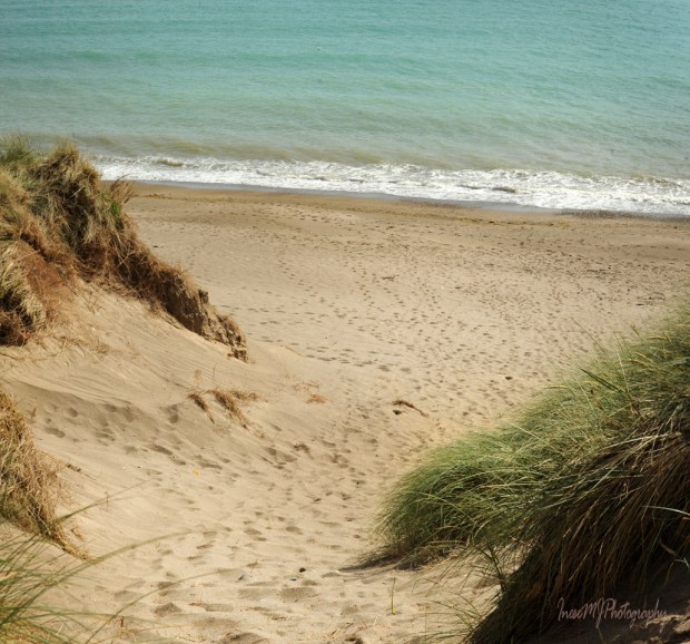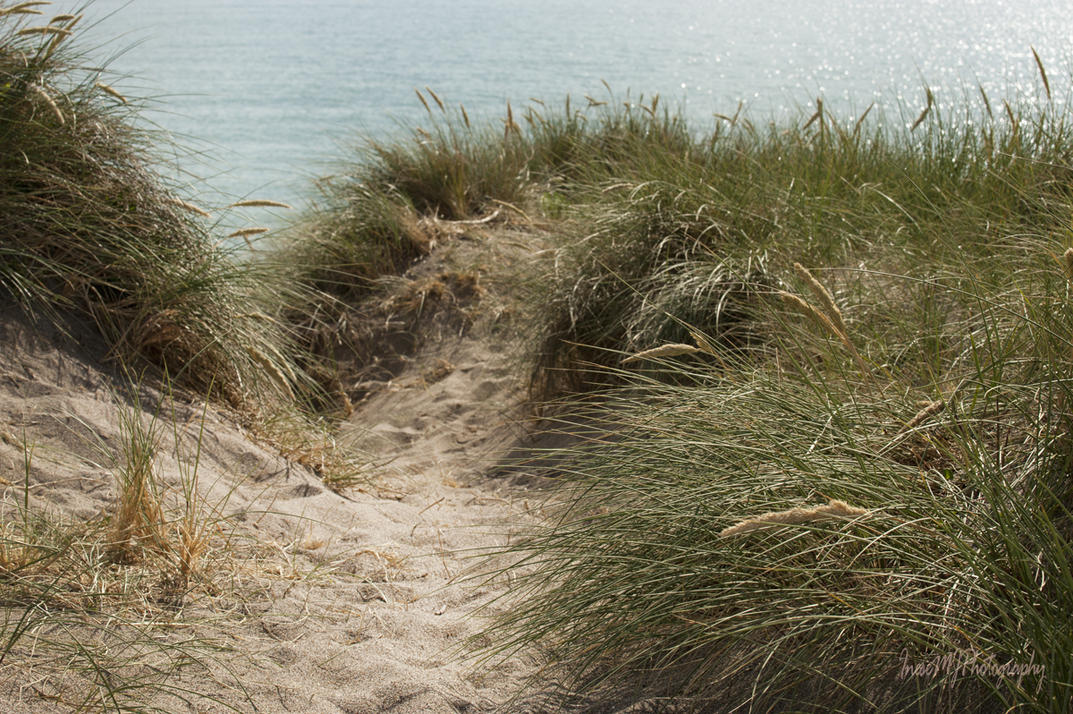The path is not paved, but it is distinct and probably used by both humans and wildlife. It doesn’t go straight to the sea. Instead, it is winding between the dunes, up and down. Breathless I get to the top only to see another dune. Well, even if we get lost, the longest we have to walk is 9 km ( 6 miles). Phew 😉