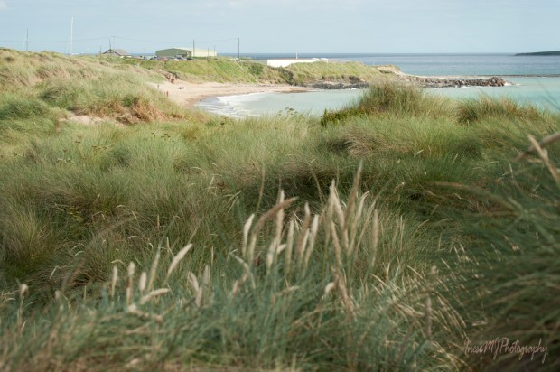 The roofs of Kilmore hidden behind a fixed dune.