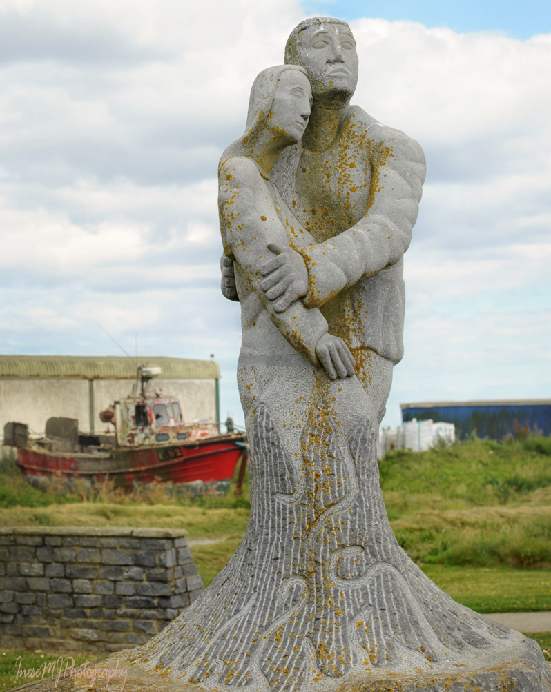 Past Forlorn Point, overlooking Ballyteigue Bay there stands a sculpture depicting a grieving couple. The stretch of sea from the Hook Head to Tuskar Rock, is called Graveyard of a thousand ships. And not only ships. Aer Lingus flight 712 went down into the sea off Tuskar Rock when en route from Cork to London on 24 March 1968, killing all 61 people on board. A cause of the crash was never determined, and only 14 bodies were recovered.