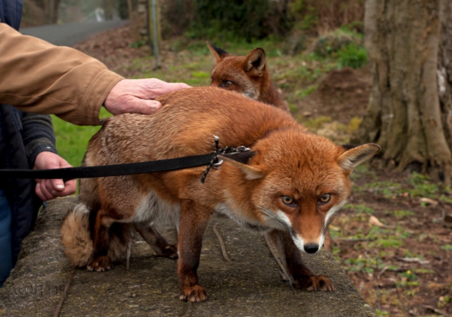 This is Gráinne. She is an easy going, clever and curious lady, devoted to her master. Back in 2007 Pat’s brother-in-law Eugene was working in a storeroom and getting the cardboard boxes ready for shredding. To his surprise he found a fox cub inside a box, malnourished, almost dead: it could be there some 10 days without food or water. Eugene brought the cub to Pat who had helped the troubled creatures before. It is how the story started. Pat consulted with a local vet, and the cub was estimated as a 5-7 weeks old, and weighed 1 pound. It was not easy to nurse the little miracle back to life and health, but they did it! The cub got a lovely name: Gráinne.