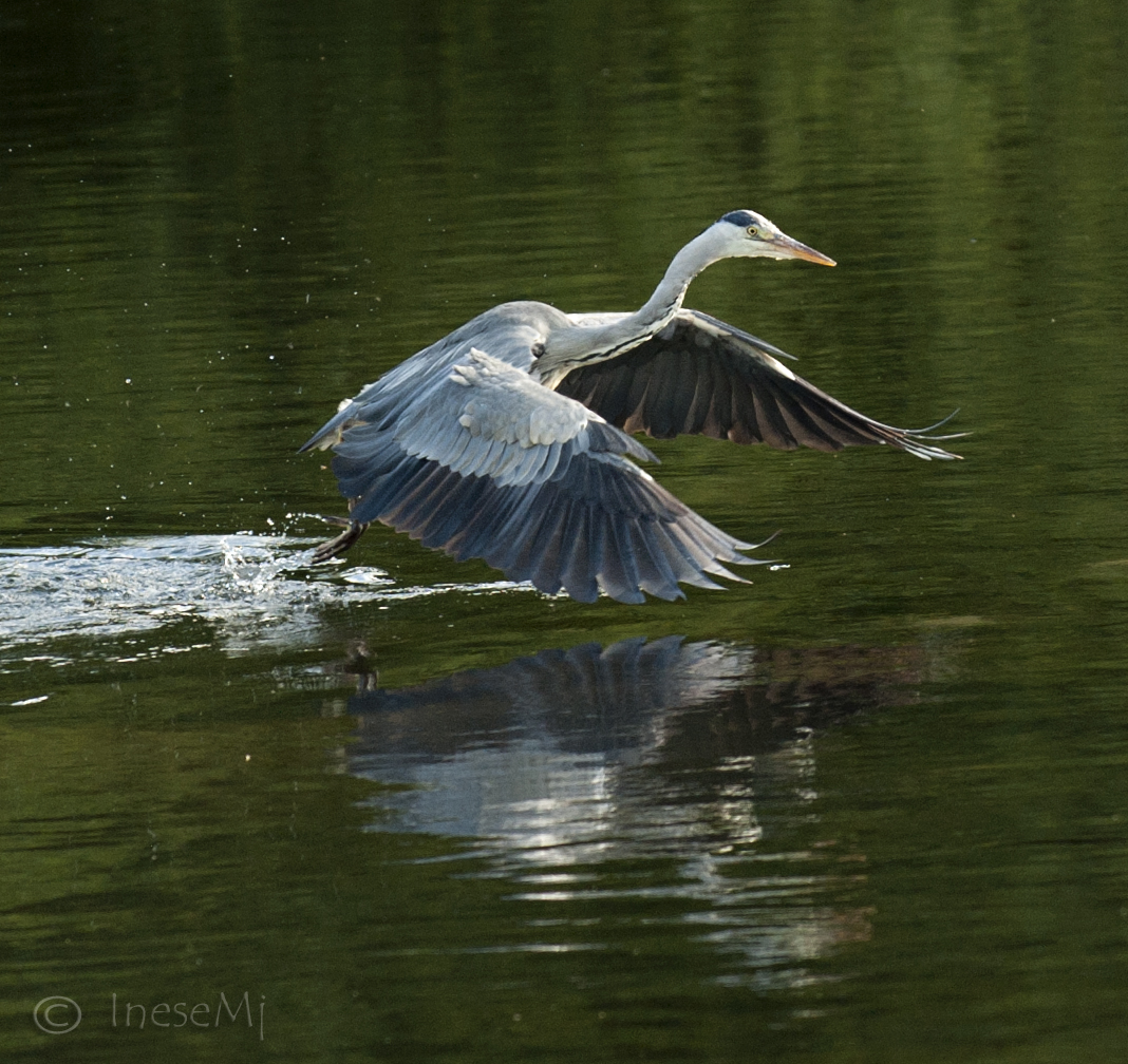 I walked about a mile and sat on a bench to rest and enjoy the evening light. A Grey heron was standing in the middle of the river, quiet and patient skinny bird looking grave and funny at the same time. I thought I might stay and wait for him to catch a fish.