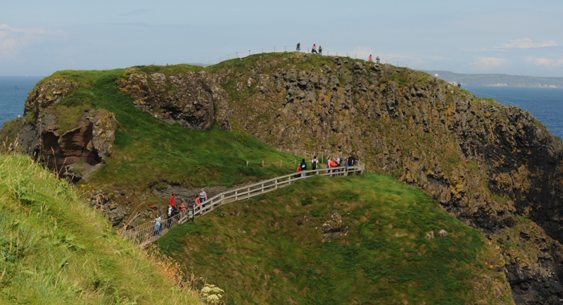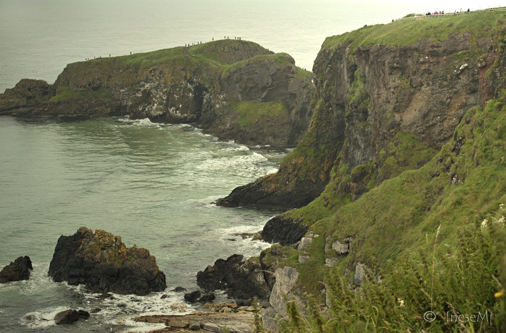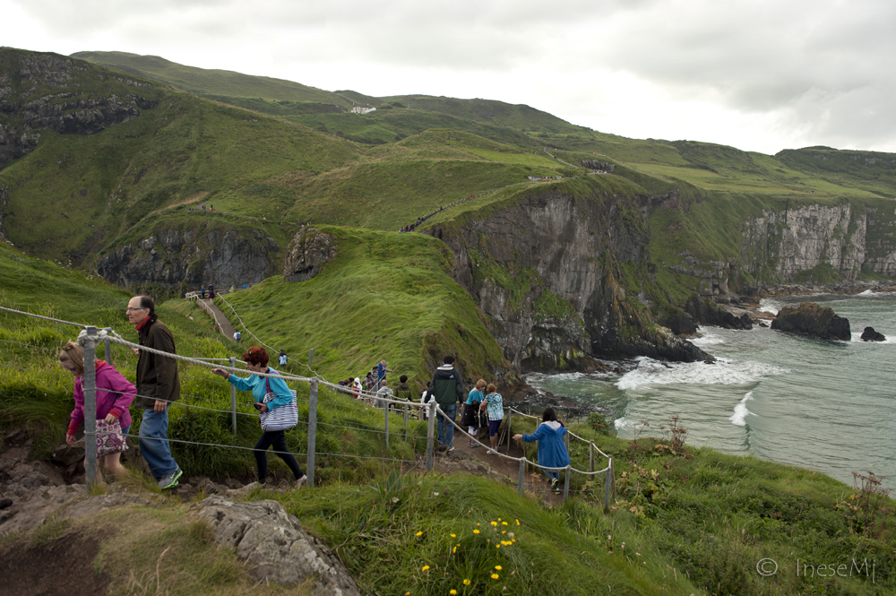 I can tell with certainty that every Carrick-A-Rede Rope bridge visitor has this picture. A one kilometre long coastal walk from the car park over the high cliffs is a treat itself, but still everybody hopes to catch a distant view of the famous bridge, so they stop after each turn of the path and take a snap.