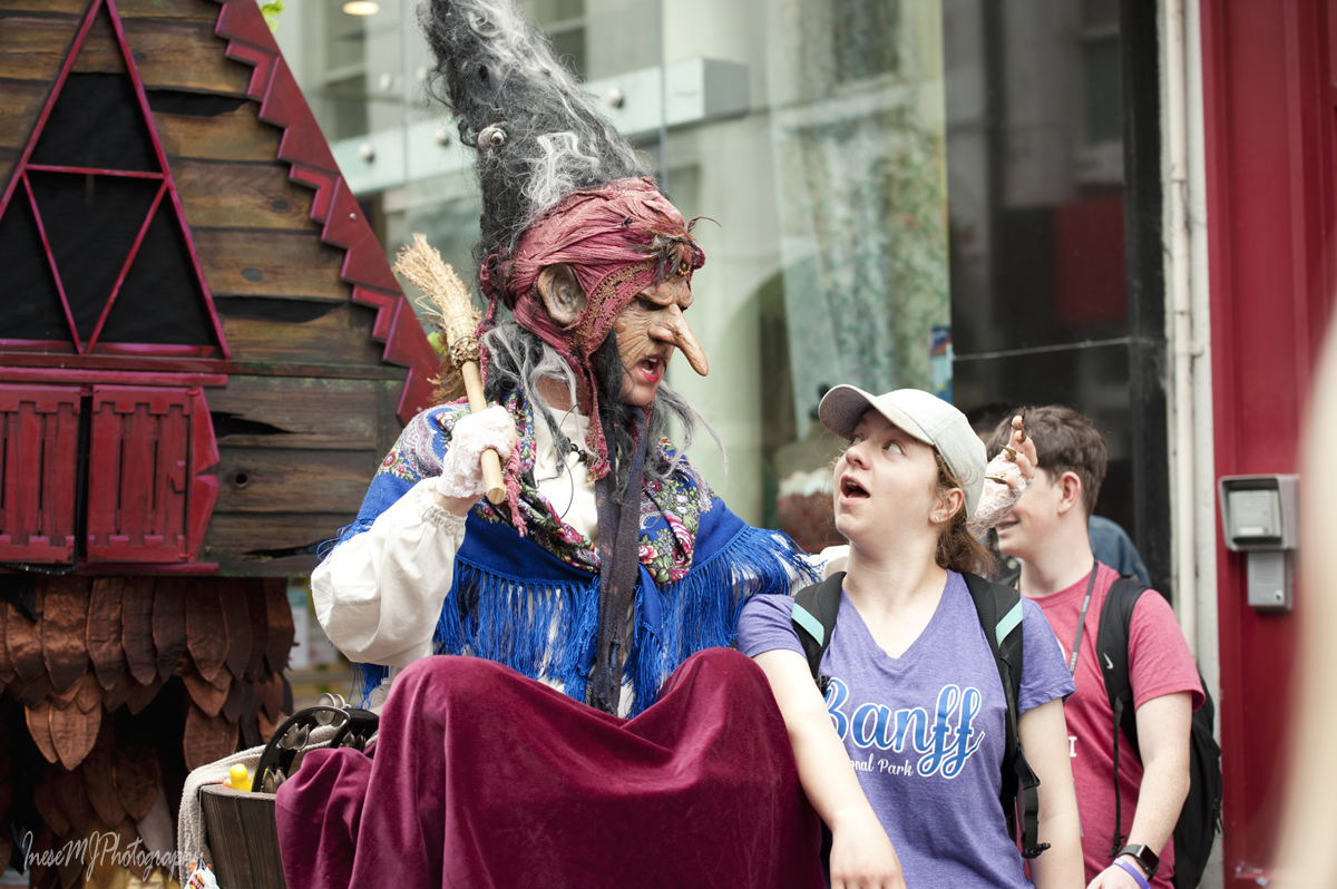 Now, this is something new. A Russian Baba Yaga is roaming the streets in her automated mortar, and her little cottage, Izbushka, is trailing behind on its chicken legs. A tag on the cottage states that it is for sale, but don’t believe what you see. Baba Yaga wants to look legal while hunting for children to cook them for dinner. The pack of salt tied to the mortar speaks volumes…