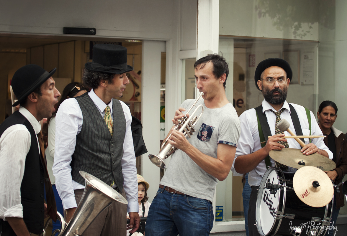 There sits the Always Drinking marching band from Barcelona, very sober and focused: the show is about to start in a minute. The Spraoi brochure states that their name refers to the “Mediterranian way of life – socializing in the streets, hanging out with friends in the squares, having some beers and tapas”. Sounds much better than “sitting alone, staring at computer screen” to me.