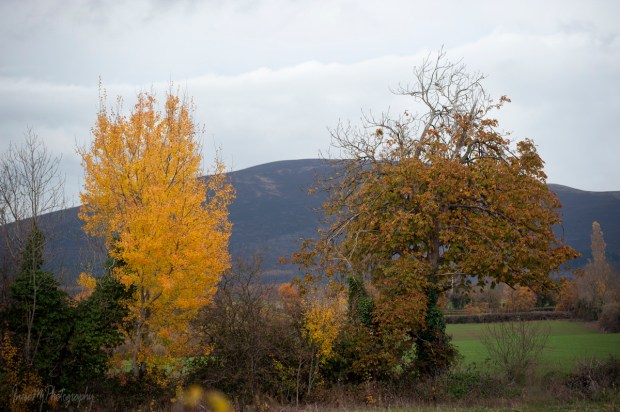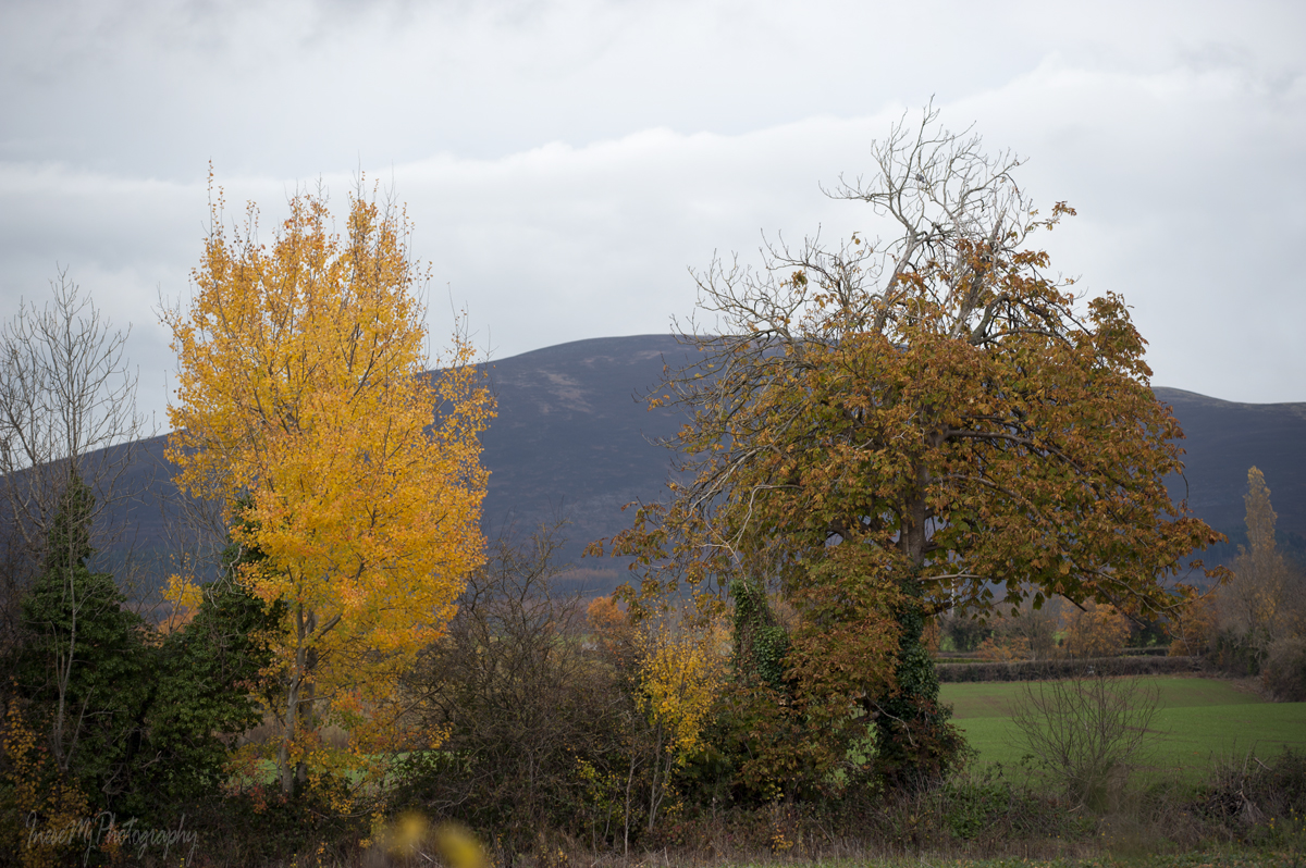 The lower slopes of the Comeraghs adorned with yellow and red foliage.