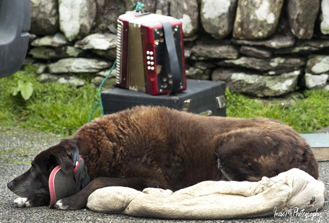 Before I open my mouth to ask for a photograph, the man retires to his van and unwraps a sandwich. I don’t wait for him to return, and take a picture of his dog and his accordion.