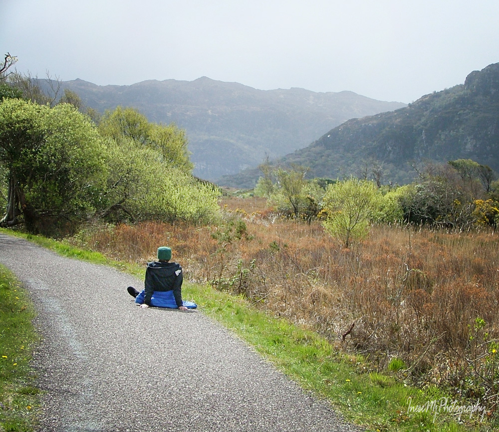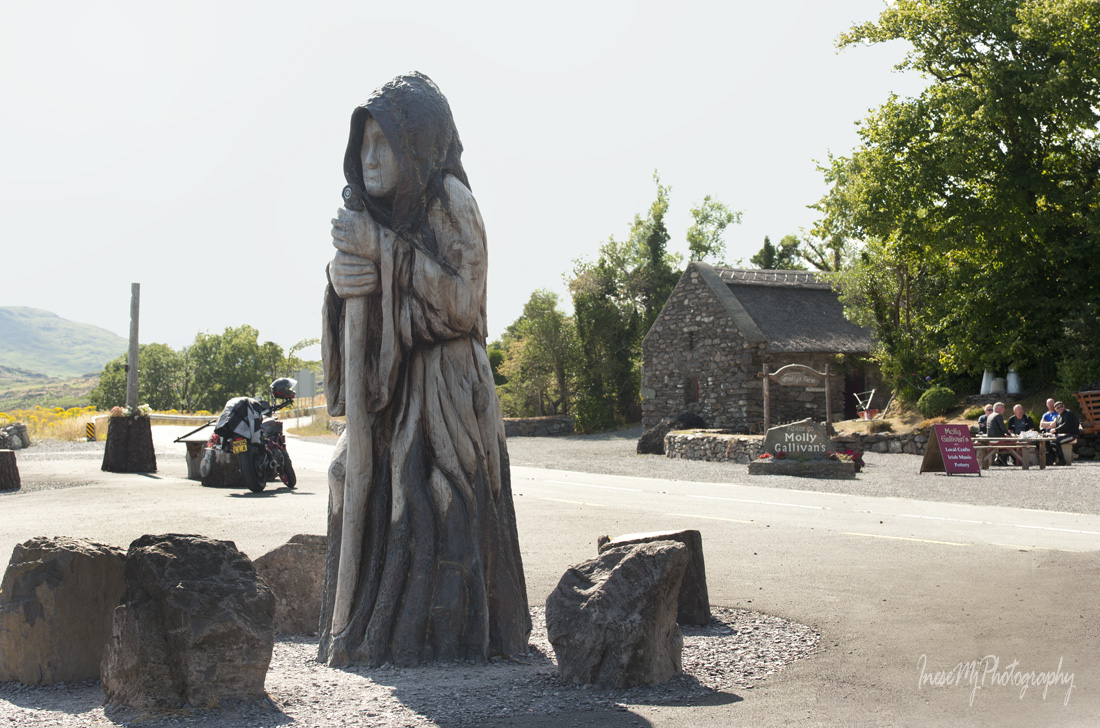 After crossing the bridge, drive through the roundabout and park for a minute so that you can walk back to the river and take a picture of the King Puck from across the road ( read about the King in this blog post) That’s young me there in the picture 🙂 Didn’t have a chance to stay in Killorgleen any longer.