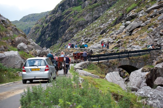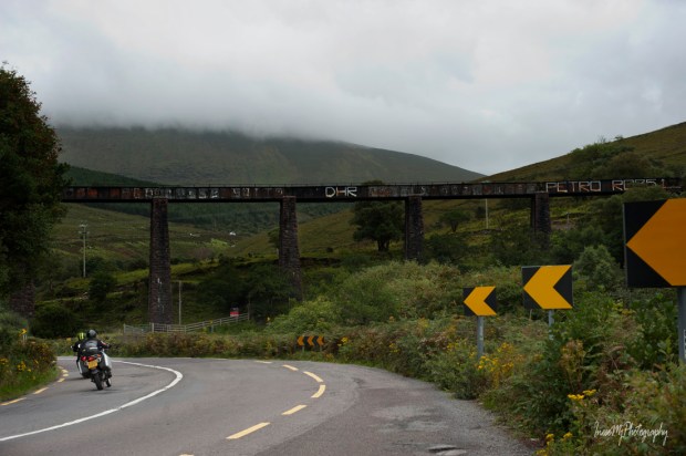 We pass the eleven span Gleensk Viaduct that was a part of the Great Southern and Western Railway Line. Closed in 1960, the railroad could be a stellar tourist attraction these days with all the spectacular views. Unfortunately it won’t happen. The railway was dismantled, some bridges closed, and even hiking on some section of the former railway is not advised. Construction of a 5.7 km long greenway near Cahersiveen has been discussed since 2013. If you are interested in hiking, here is a great list of trails.