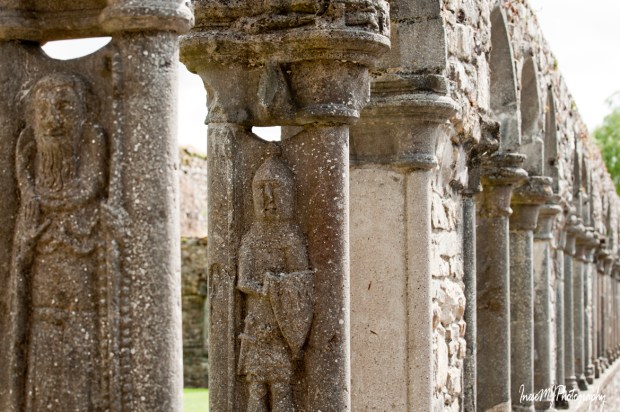 There is something else quite amazing in the chapels – beautifully carved tomb weepers decorating the mensa-tomb chests. In the picture below you see six weepers – the apostles who can be recognized by the attributes related to the manner of their martyrdom. From the left: St John with a chalice; St Thomas with a lance; St Simon with a saw; St Bartholomew with skin – it is believed he was flayed alive; St Paul holding a sword, and St Matthew an axe. The carvings were made by the sculptor Rory O’Tunney of Callan.