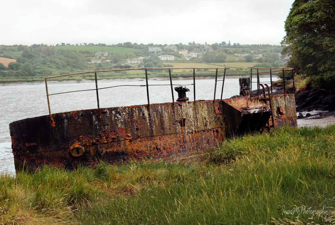 In the picture below you see the Russian Side – the east part of Cheekpoint. The twin stacks on the right belong to the Great Island power station sitting across the river like a sore thumb. In my previous pictures I made sure to keep it out of frame. The picture was taken from the Wexford side of the river. I don’t know the story of the abandoned boat. You can see it in Google Earth.